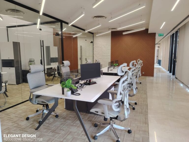 Elegant Design Company provides office interior design services, combining creativity and practicality to create comfortable and inspiring work environments that enhance productivity and meet clients’ needs with the best standards.